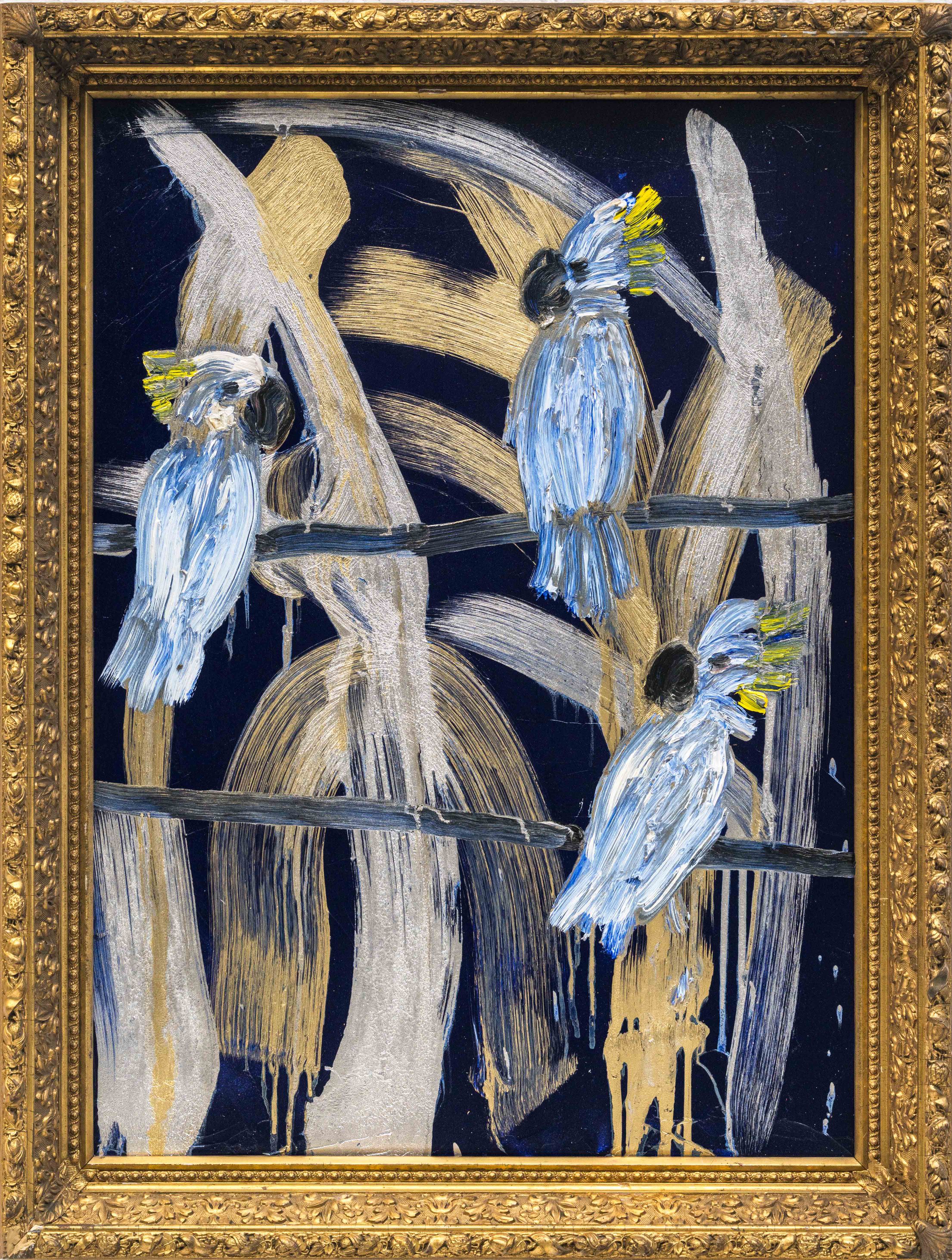 Hunt Slonem, Monsoon August, oil on panel, 2025, 43 x 32″ framed