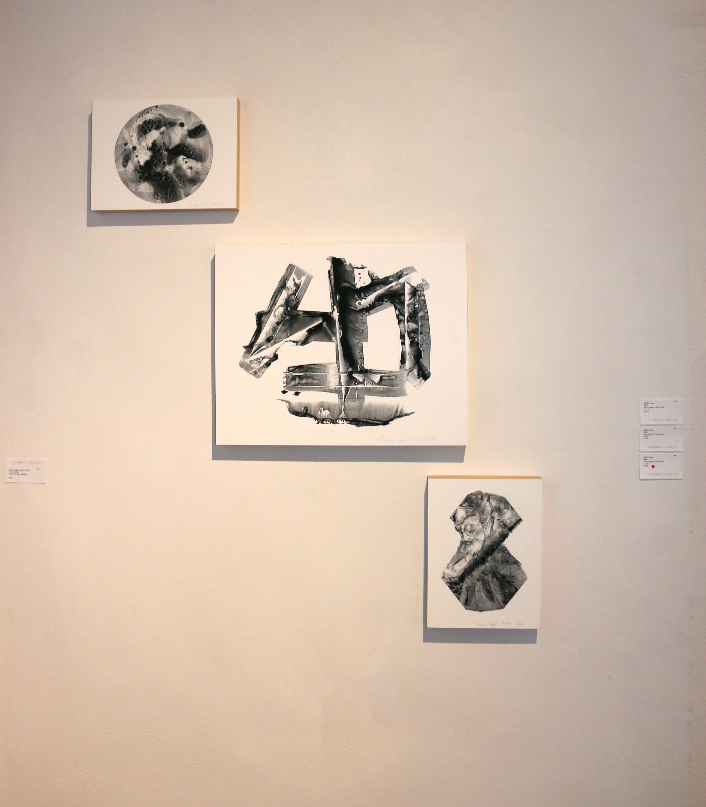 Laget’s new alchemical ink paintings on paper “feel” almost primordial with their topographical sense of sediment and minimal color. Their intimate scale exists in contrast to the monumental, geological forms they contain. These slow, quiet works are dense microcosms of memory, matter, and suspended meaning, where ephemeral gestures carry planetary weight.