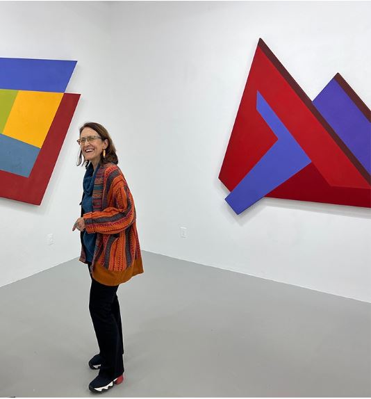 Born in North Africa and based in New Mexico, Mokha Laget is known for her shaped geometric abstractions that explore perceptual paradoxes through vibrant color and architectural form. Trained in classical techniques in France, she earned a BFA from the Corcoran College of Art and Design and a degree in translation from Georgetown University. Her interdisciplinary career spans painting, curating, writing, theater, and sound-based visual scores.