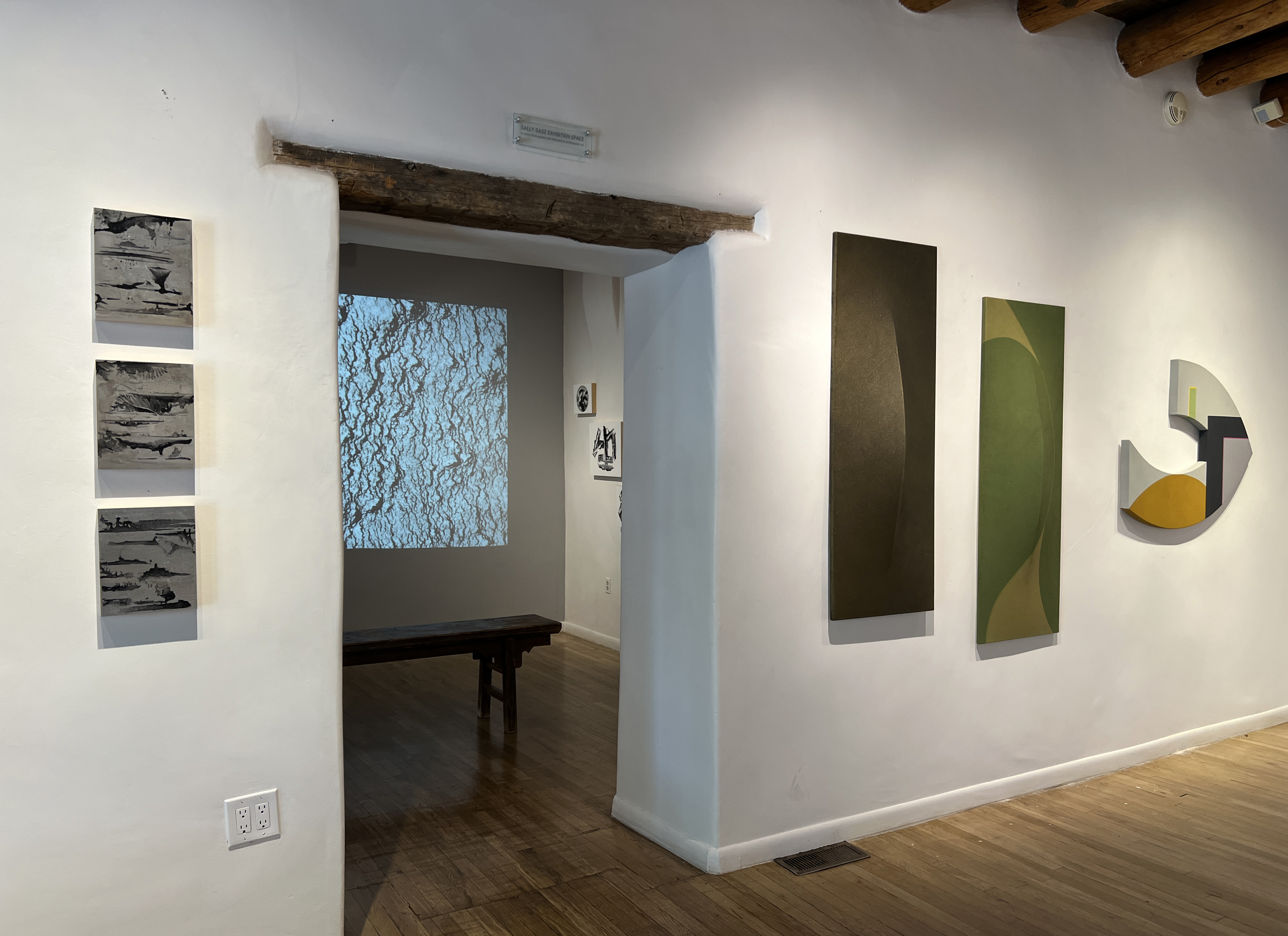 Laget has long pushed painting beyond surface and into a durational, spatial, sonic experience with her visual scores. She hears imaginary music in her mind, then draws a score to “see” what she hears. In Elemental Drift, Laget collaborates with new media artist Morgan Barnard to break her abstractions apart, allowing them to drift through original sonic space and recombine into new forms and evolve again and again. Laget writes about this work: “abstraction becomes motion, pigment becomes pulse, and geometry resonates in time”-extending her inquiry into synesthetic translation and interdisciplinary form.