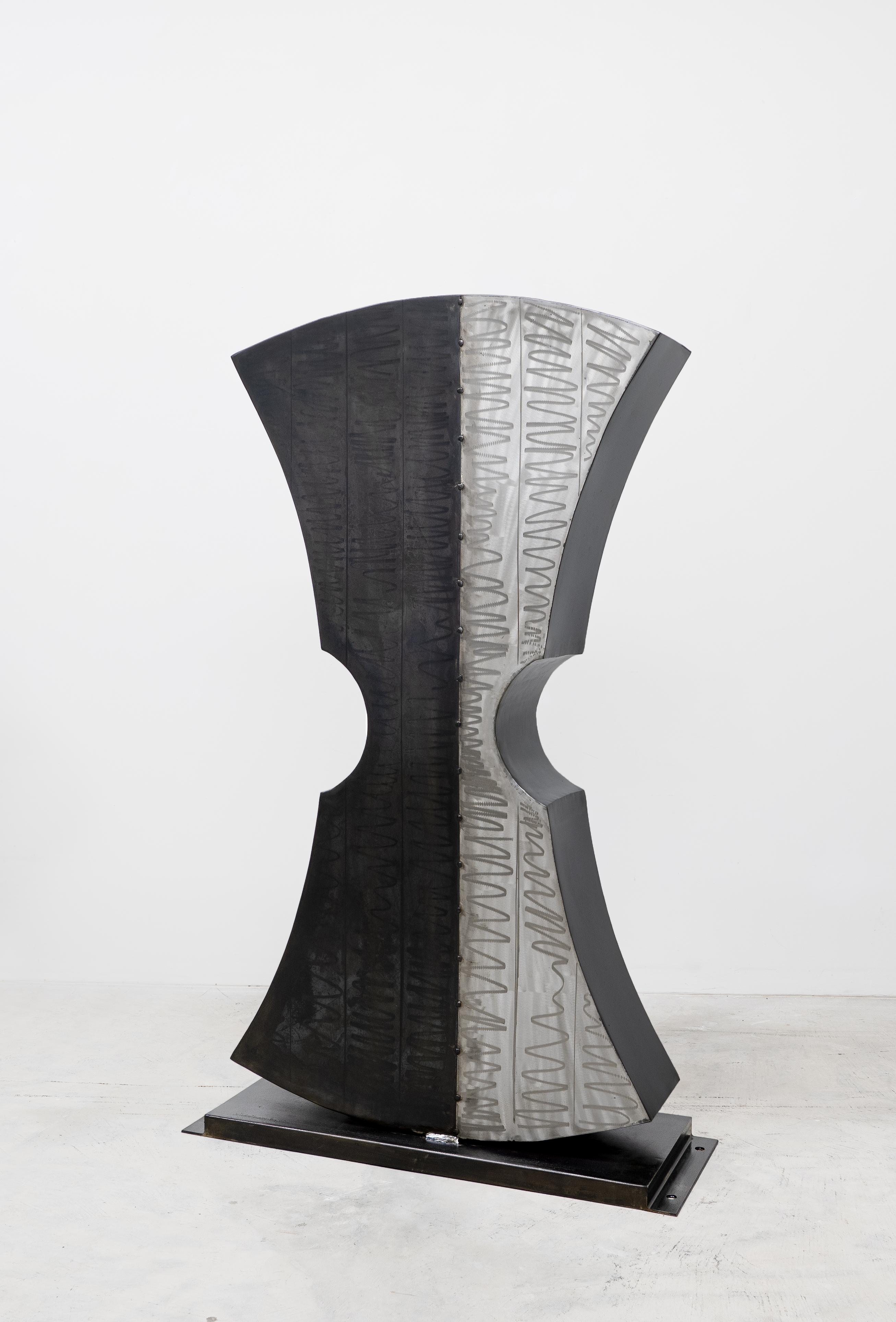 Karen Yank, Silhouette VII, stainless steel and blackened steel, 2023, 61 x 36 x 12″