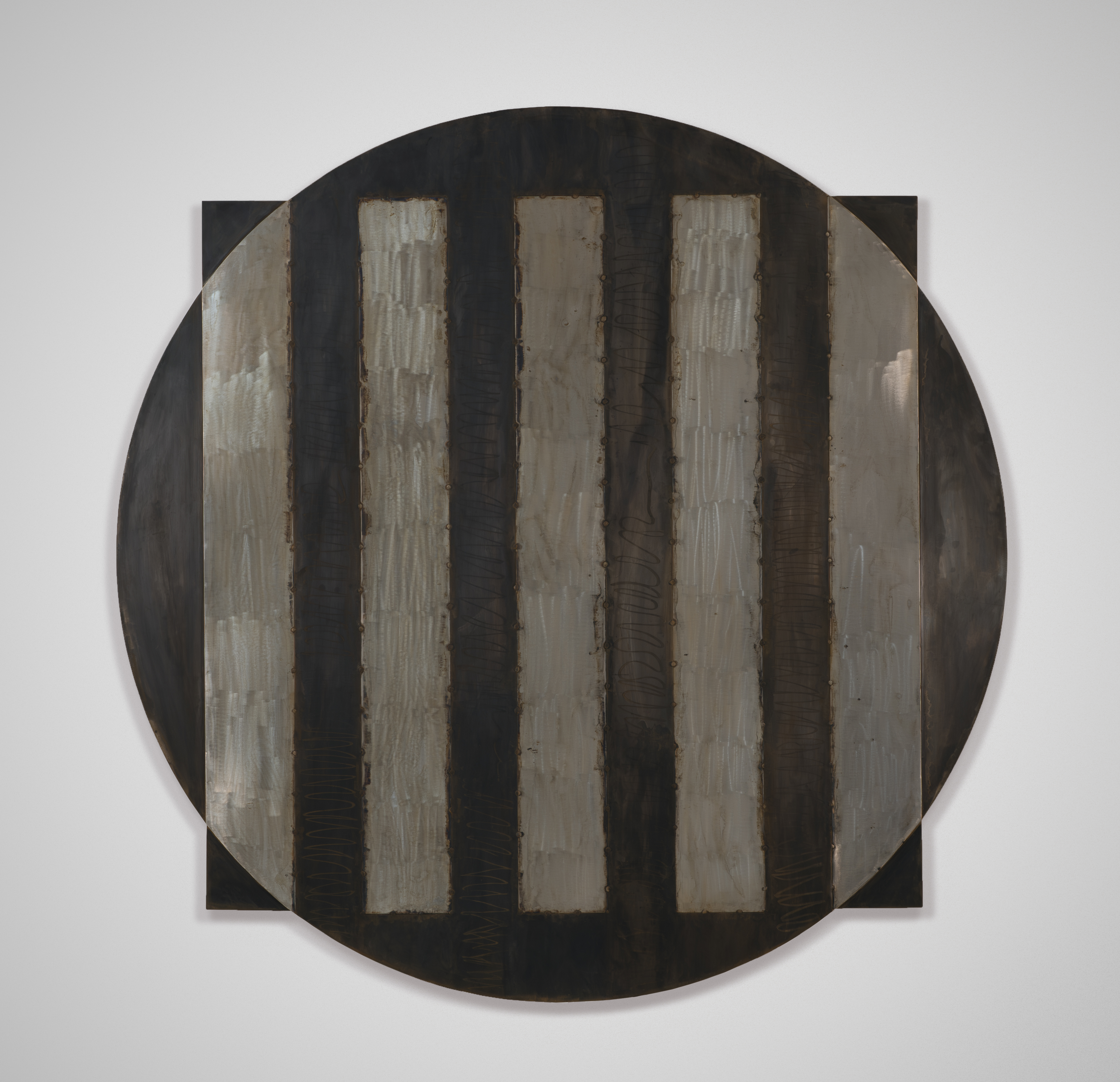 Karen Yank, Favor, stainless steel and blackened steel, 2018, 24 x 24″