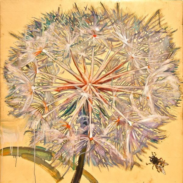 Liu, herself was sent to the Chinese countryside to labor in the fields for four years, and there she drew strength from the power of art, as seen in “Dandelion with Bee.” She secretly painted, drew, and photographed the village workers, seeing in them the human dignity that she wanted to share. Later, she turned her attention to the young girls who were sold into sex work by their impoverished families. These women had been commodified, their names replaced with the names of rare gemstones or beautiful flowers as their services were marketed to wealthy men. Like the countryside villagers she had rendered previously, she created beautiful places for these women to rest in perpetuity, on backgrounds of gold or silver, surrounded by flowers and other offerings.