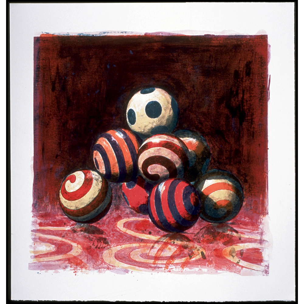 John Gibson, Wabash is an exceptional lithograph published by Landfall Press. It is signed by the artist. It is in excellent condition. Gibson is known for his use of the sphere as a compositional element in still life compositions, thus combining the formal with the quotidian. His works were exhibited at Frieze, Seoul, in 2025, and are included in prestigious museum and private collections such as The Metropolitan Museum of Art.