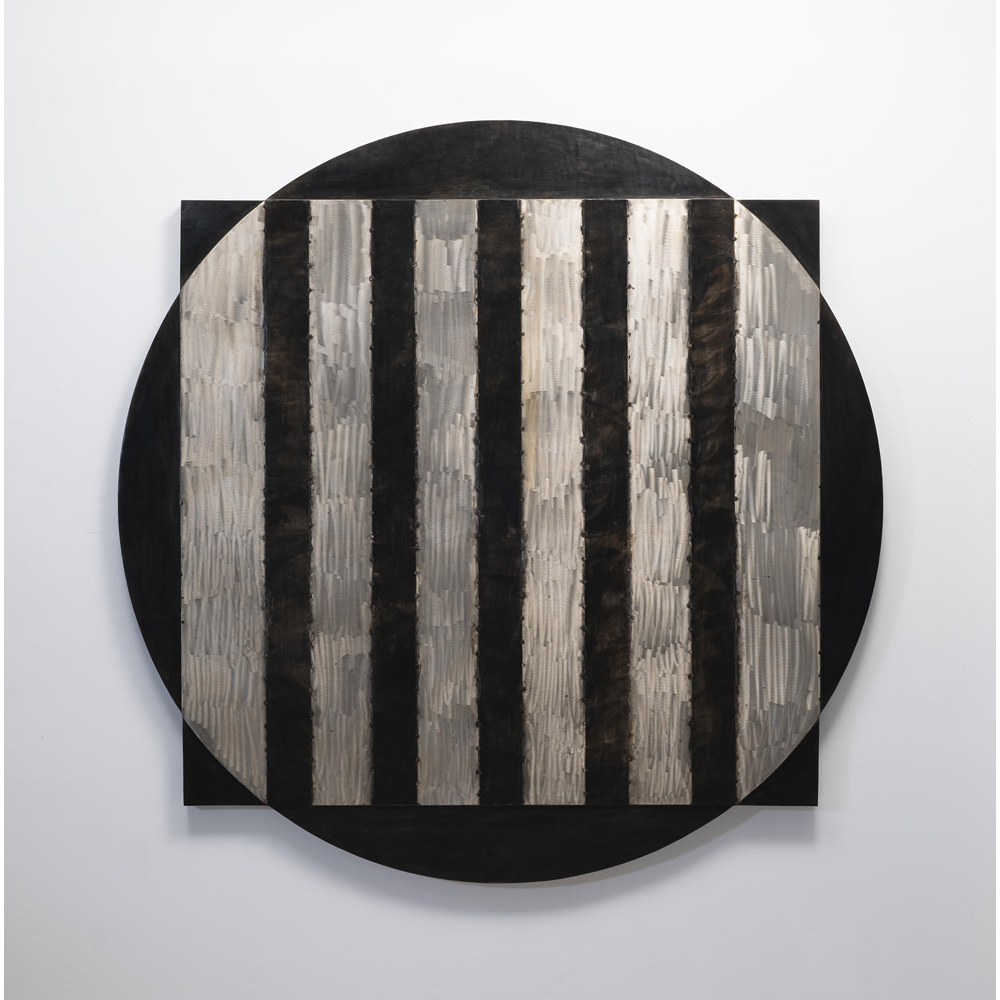 The circle and the cross appear thematically throughout Karen Yank’s practice. Circles can be the center of a flower, the face of a clock, a yin-yang, or a metaphor for the re-appropriation of energy through the cycles of life and death. The antitheses of her mentor, Agnes Martin’s square. In contrast, the cross can be a mathematical placeholder, a metaphor for where two forces meet, the marker for something precious, or a nonverbal sign of honesty and fidelity in the middle ages. Together the two symbols carry ancient iconographic gravity from the structure of our solar system, these cross-cultural spiritual meanings. Both powerful and metaphysical, the simple and enduring forms connect Yank’s sculptures to ancient mark-making and the universal human need to create.