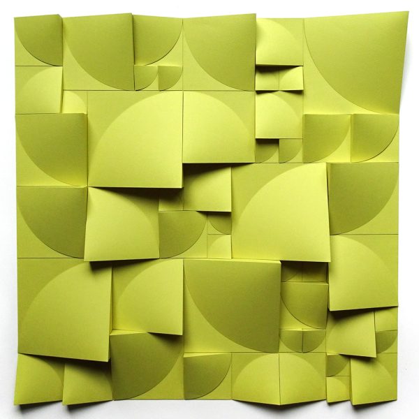 Matt Shlian’s “Omoplata Magenta” exemplifies the dynamism, color, and movement of mathematics. Shlian constructs his works from paper, based upon engineered folds to create ultimate visual engagement. He incorporates both color and shadow in his overall artistic composition.