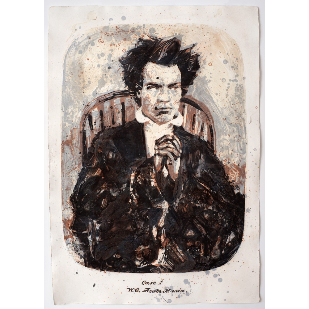 Lundy practices compassion for women who have been mischaracterized throughout history. Many of the women Lundy paints were inhabitants of mental institutions and jails in the early 1900s. She paints from photographs retrieved from psychiatric and incarceration files, always devoting only one portrait as a memorial to each woman. The root of Lundy’s compassion for her subjects comes from the injustices they suffered, such as being locked up for such “crimes” as promiscuity, disobeying their husbands, or being too loud. She does not judge or preach about the past treatment of these women in her paintings; she simply embraces the facts of life of women she never knew, embodying compassion by virtue of her attention. Monica “paints” with coffee and charcoal, incorporating these elements of everyday reality of the women into her creations, as if the shared materials help her better comprehend their reality. She uses fire as a transformative element of creation and destruction in the portraits she creates, almost as if this primal element has been used to both destroy and empower these (and all) women at different points in their lives. By using materials and presenting imagery of women who suffered unjustly in the past for “offenses” we regard as fully acceptable today, Monica Lundy helps us experience the feeling of interconnectedness that unites humankind.