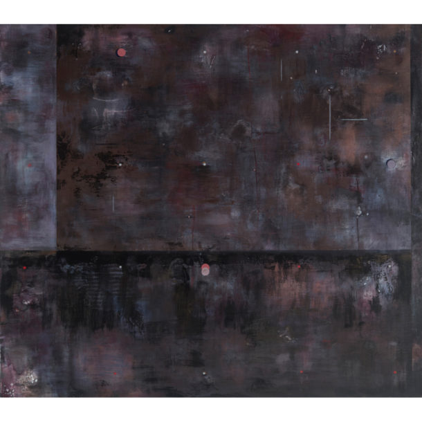 Raphaëlle Goethals’ encaustic on birch panel work, False Anxiety, references Goethals’ fascination with the human mind and internal psychological processes. Here, one might first experience a sense of anxiety when confronting his inability to distinguish recognizable forms within the work. However, this is the exact process that allows the viewer to understand and thus subvert the subject matter. This is most pure experience of abstraction in art. In this way, False Anxiety holds a degree of agency over the viewer by rejecting classification through its atmospheric and mysterious surface. Raphaëlle, however, instructs through her inclusion of a grid-like pattern of dots and partitioned portions, that there is an innate order within the ambiguity of the natural world.