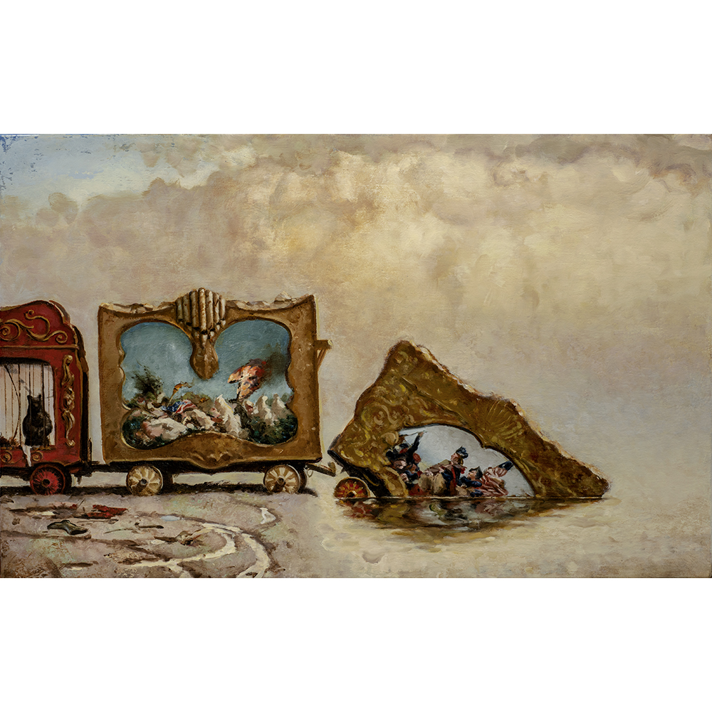 Scott Greene began his art school education at the California College of Arts and Crafts in Oakland, California, and received his B.F.A. from the San Francisco Art Institute and his M.F.A. from the University of New Mexico, Albuquerque. Adopting the language and finish of classical painting, Greene often uses the composition of a historical work as a matrix for making a painting that humorously examines the relationship between politics, nature, and culture.