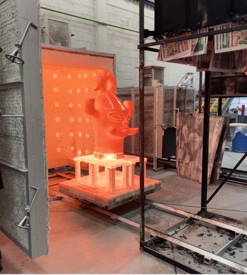 Virgil Ortiz, making of Recon Watchman, Bu’name (West), 2023, raku glazed ceramic, 44 x 35 x 26″